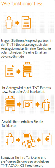 - Akzeptanzstellen in 36 Ländern zur Verfügung Direkte Abrechnung über TNT Express Deutschland